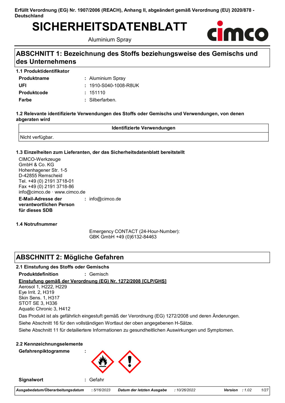 Aluminium-Spray aus 99,5% reinem Aluminium bis +800°C hitzebeständiger Langzeitschutz, haftet auf fast allen Werkstoffen wie Stahl, Buntmetall, Holz, Pappe, Kunststoff, Keramik usw. beständig gegen Witterungseinflüsse. Abriebfest. Sprühdose-aluminium, matt; 400 ml.