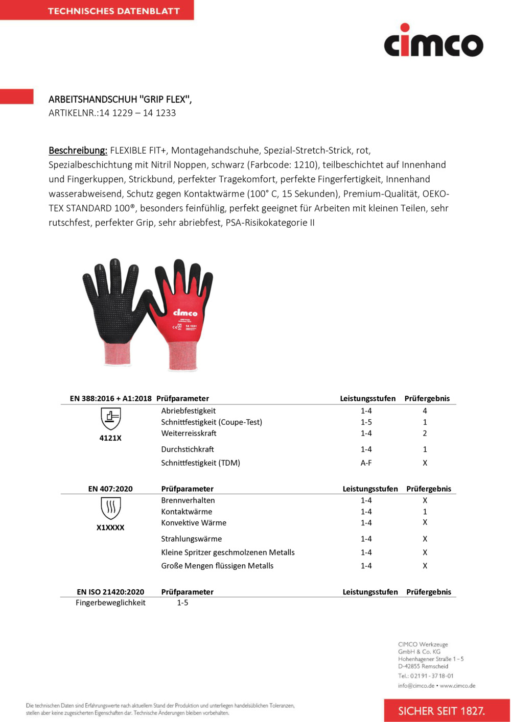 Flexible Fit +, assembly gloves, special stretch knit, red, special coating with nitrile nubs, black (color code: 1210), partially coated on palm and fingertips, knitted cuff, perfect wearing comfort, perfect dexterity, water-repellent palm, protection against contact heat (100°C, 15 seconds), premium quality, OEKO-TEX STANDARD 100®, particularly sensitive, perfect for working with small parts, very non-slip, perfect grip, very abrasion-resistant, PPE risk category II
